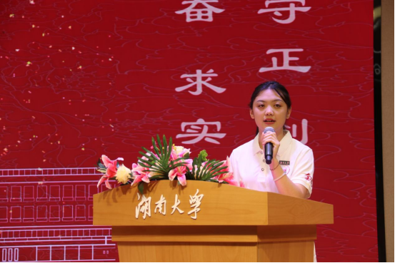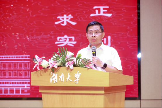 一是大学之大,在于学问之广博。湖南大学既注重传授专业知识,也重视人文素养的培育。专业知识的深度是同学们未来安身立命的“硬本领”,每一门专业课不仅是知识的传递,更是回应社会需求的“钥匙”;人文知识的厚度则是涵养格局的“软实力”,它让学子始终保持温度、方向和格局。他勉励同学们既要成为专业领域的“破壁者”,也要担当人文精神的“传承人”,铭记书院“道南正脉”的文化嘱托,心怀湖湘先贤“心忧天下”的使命担当。