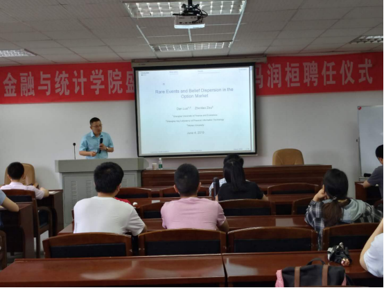 2019年6月6日上午,上海财经大学罗丹副教授应邀来访永利皇宫赌场 ,于湖南大学财院校区行政楼301展开了题为《Rare Events and Belief Dispersion in the Option Market》的学术讲座。讲座由马勇副教授主持,永利皇宫赌场 师生参加了本次讲座。