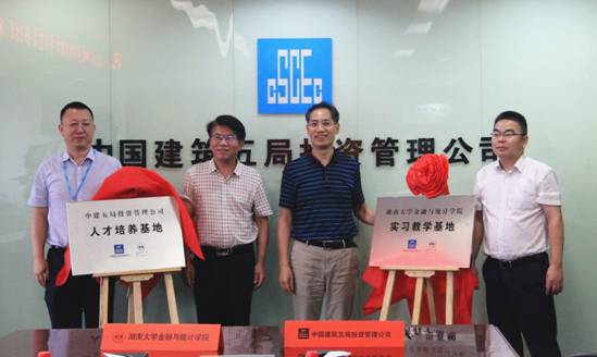 仪式最后,聂国军、卢洪波、陈迪红、钟毅共同为“永利皇宫赌场-永利在线赌场网站 实习教育基地”和“中建五局投资管理公司人才培养基地”揭牌。